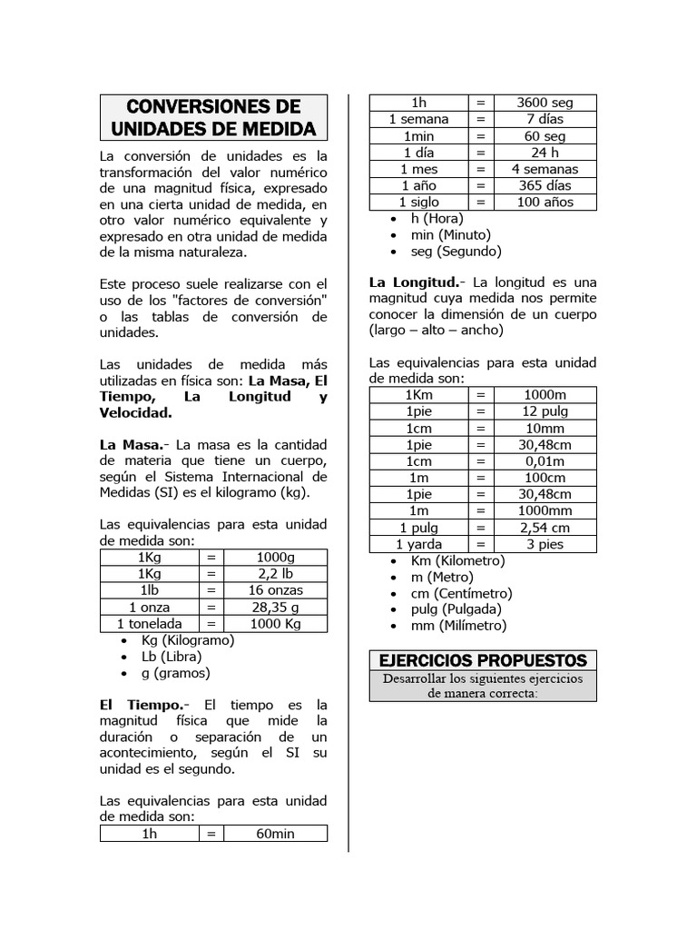 Conversión de Unidades: 50 Ejercicios Resueltos [PDF] + Guía | Paginas ...