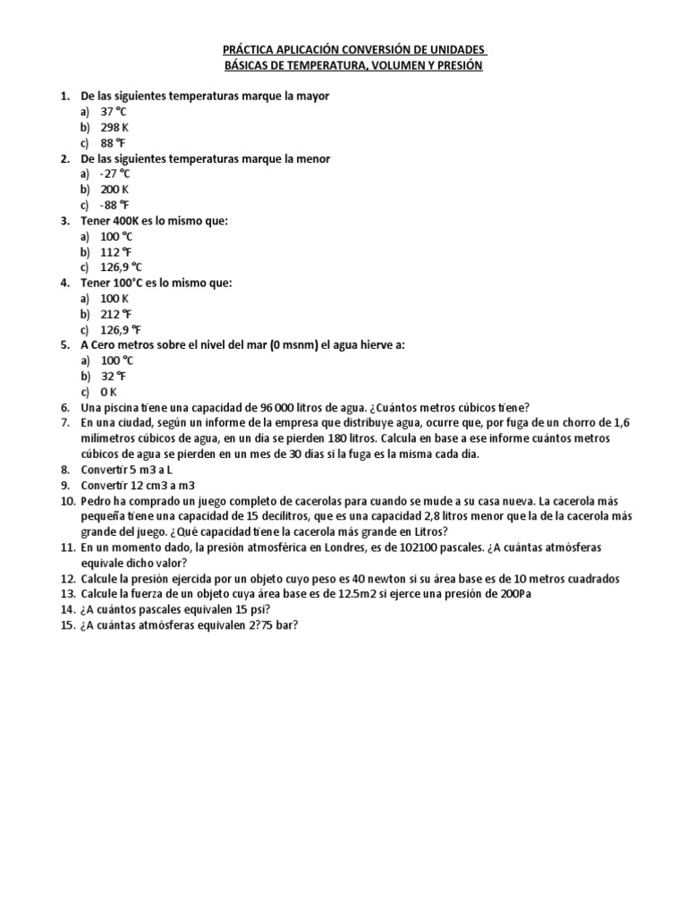 Conversión de Unidades: Temperatura, Volumen y Presión | PDF