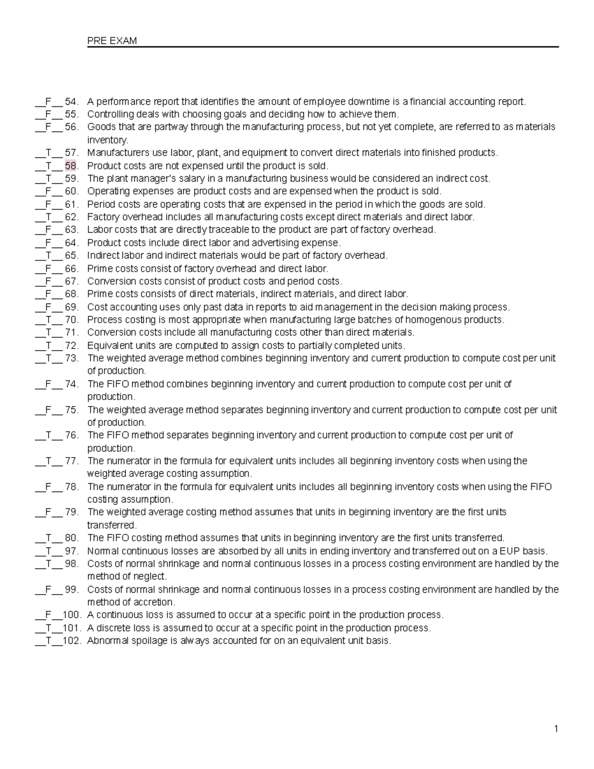 Pre Exam: Cost Accounting Concepts and Applications - Studocu