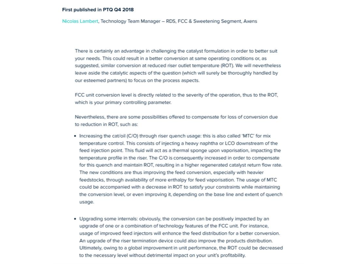 Optimizing Riser Quench for Enhanced FCC Conversion Efficiency - Studocu