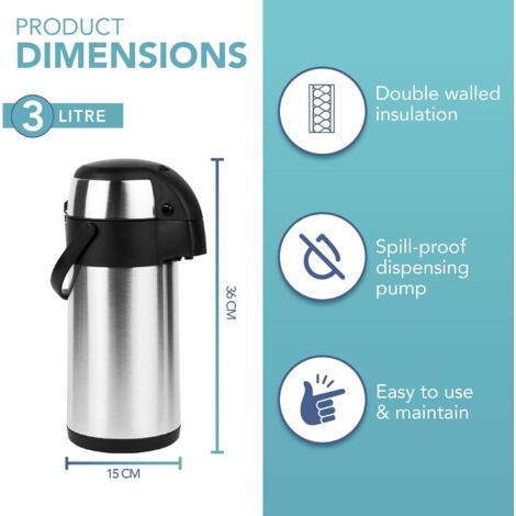 Cafetière isotherme - 3 L - Acier inoxydable - Pompe manuelle - Base ...
