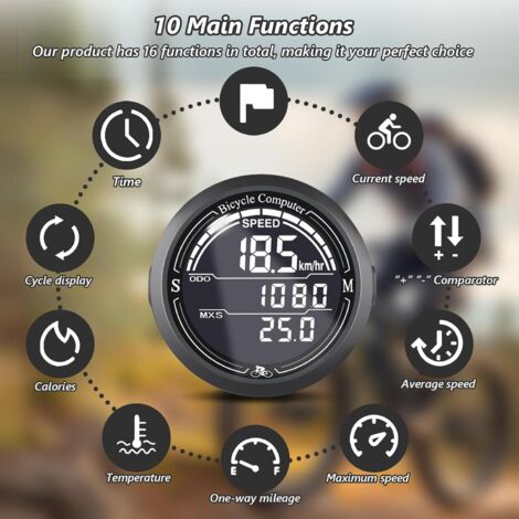 Compteur de vélo sans fil - 19 fonctions - Étanchéité IP67 - Écran HD ...