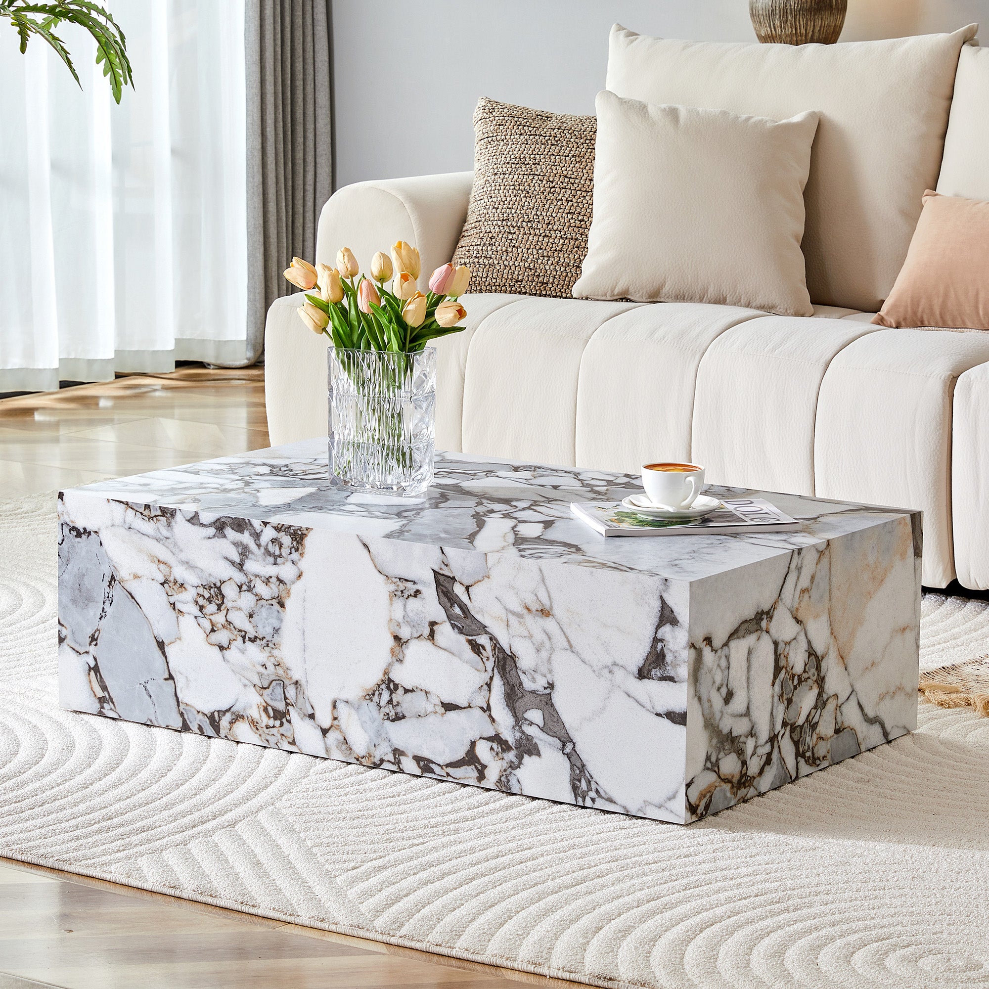 Table basse rectangulaire blanche à l'aspect marbré. Dimensions : 90 × ...