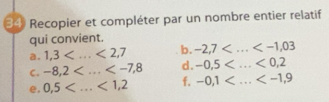 Résolu :Recopier et compléter par un nombre entier relatif qui convient ...
