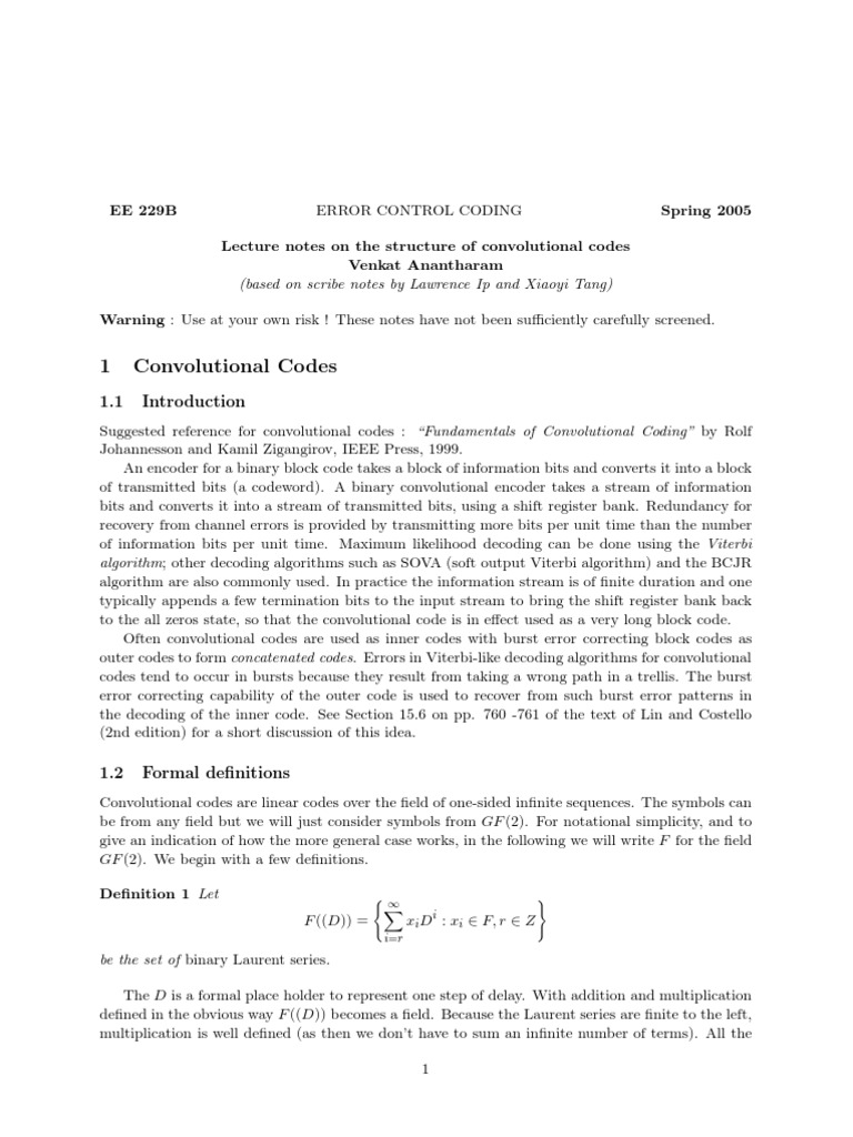 1 Convolutional Codes | PDF | Teaching Methods & Materials