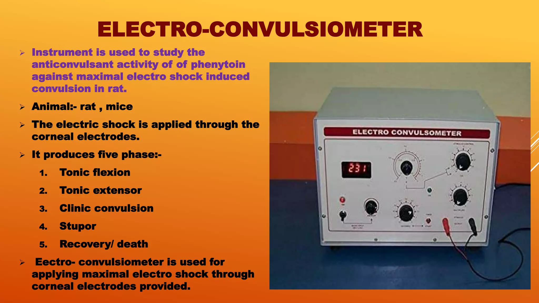 Electroconvulsiometer for studying anticonvulsant activity - Arun ...
