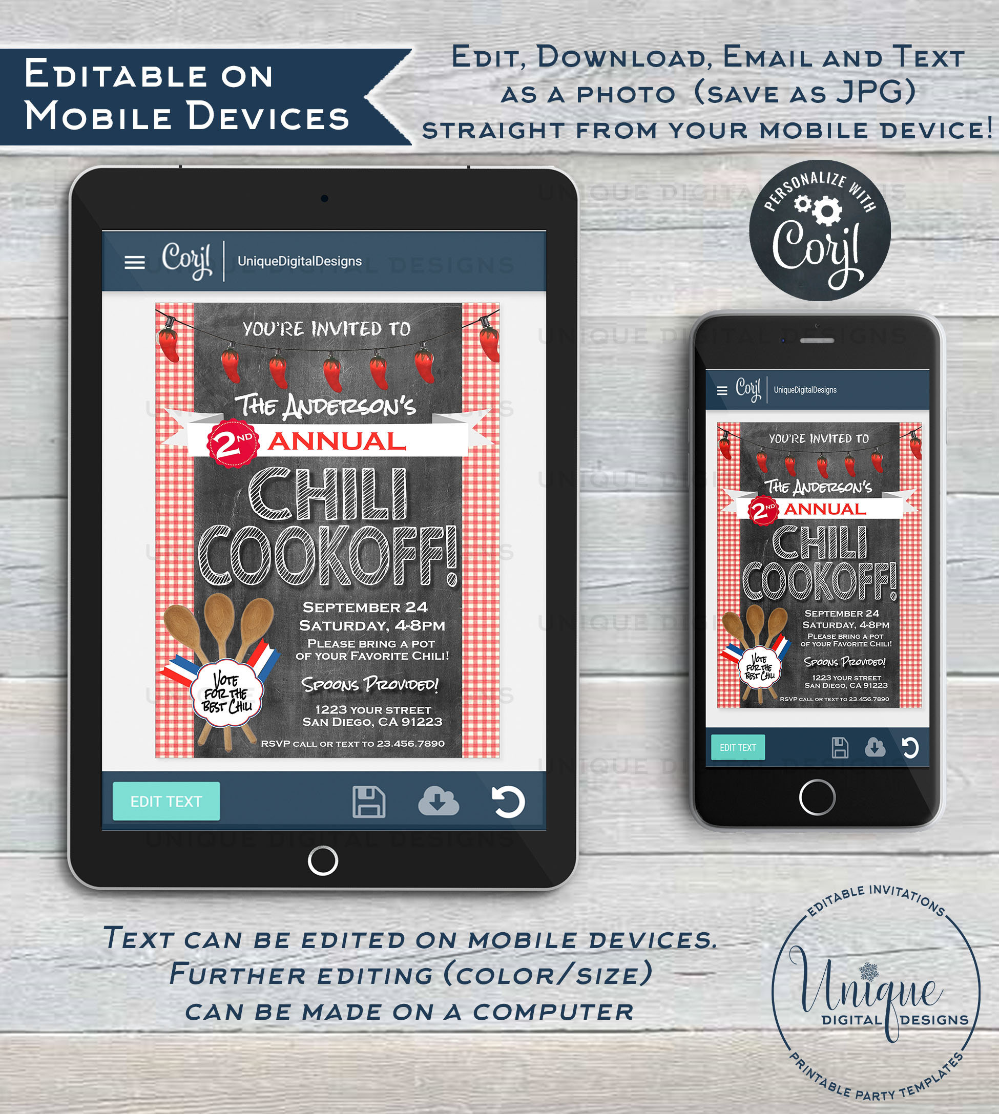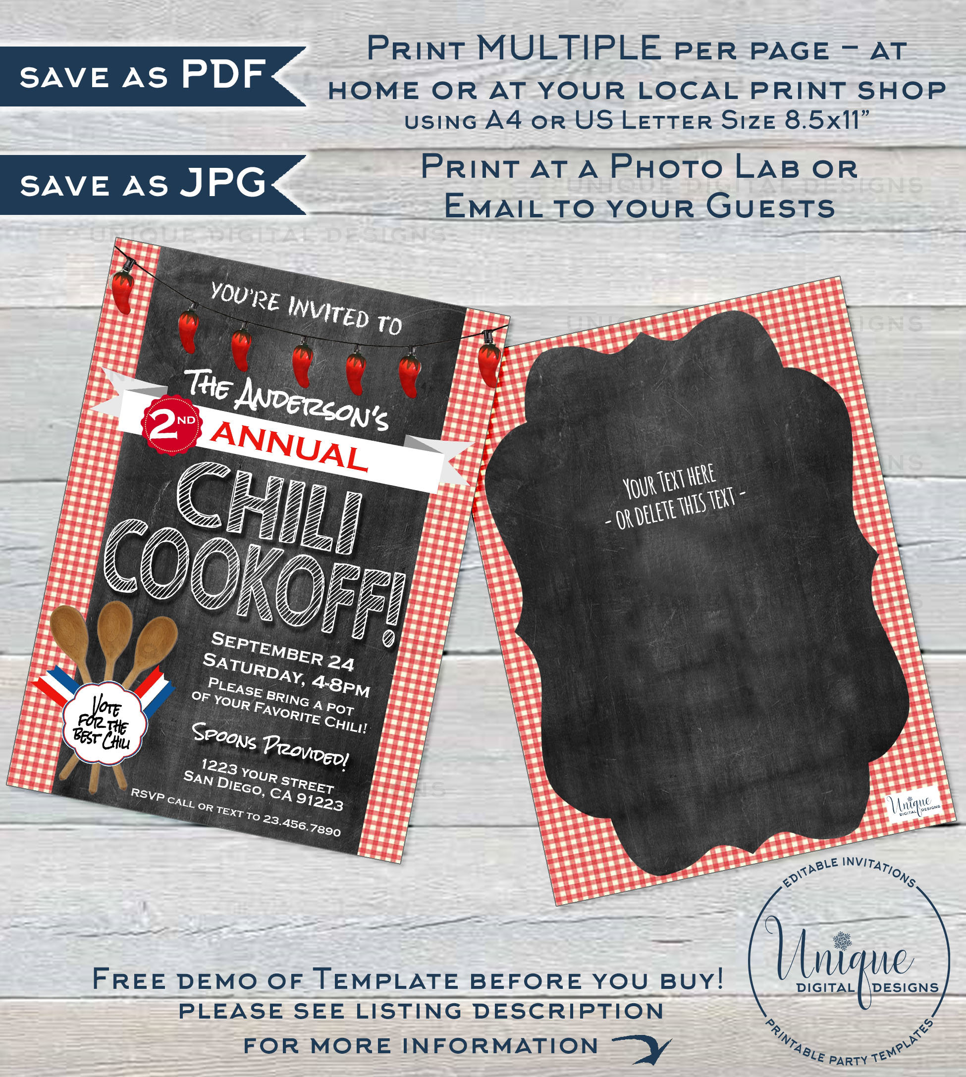 Editable Chili Cook-off Invitation: Contest Party Invite (digital) - Etsy