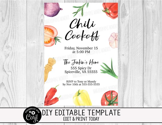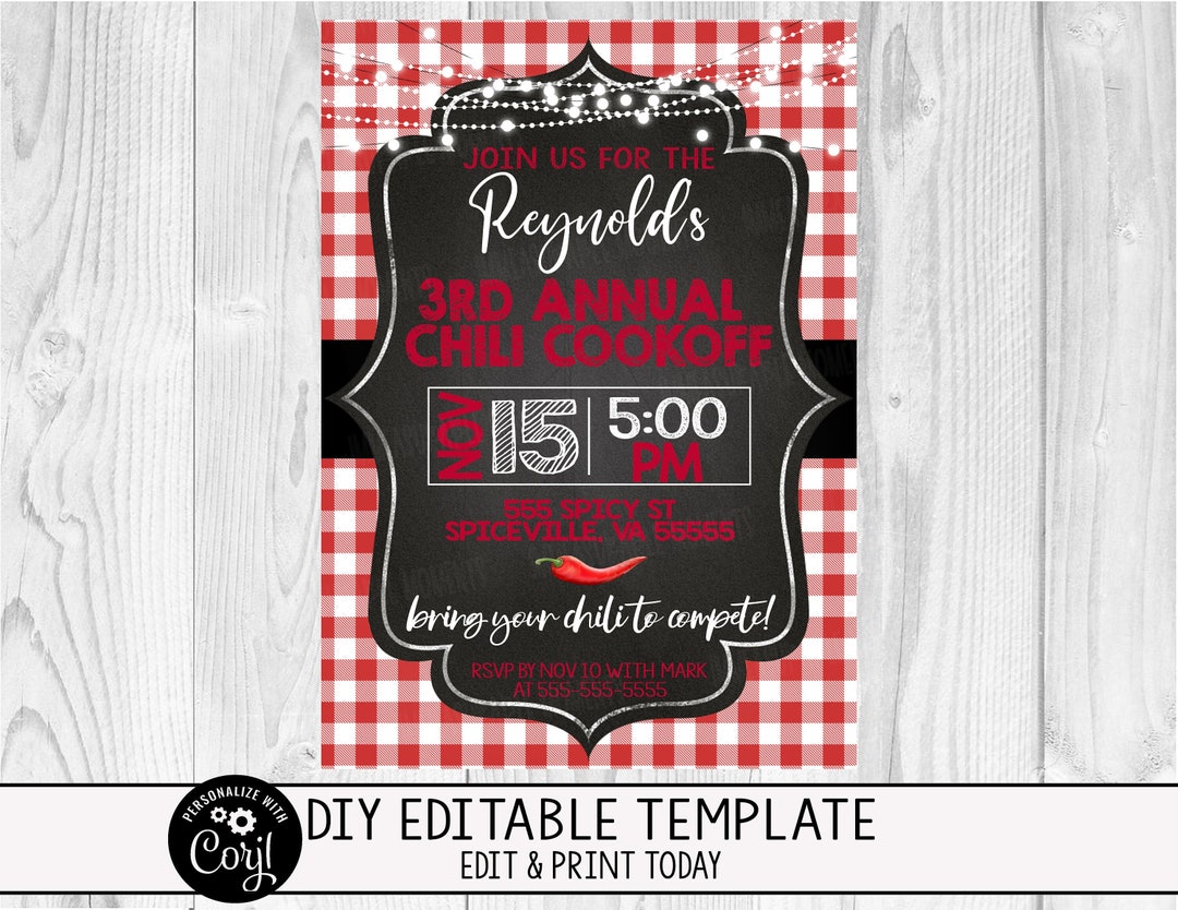 Chili Cook off Invitation Editable Chili Competition Chili - Etsy