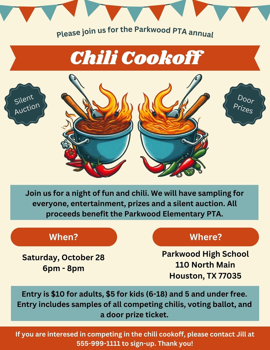Chili Cookoff Flyer, Chili Competition, Chili Cookoff Party, Chili ...