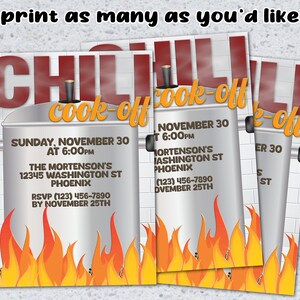 Chili Cook Off Invitation, Editable Chili Competition Chili Cookoff Pa