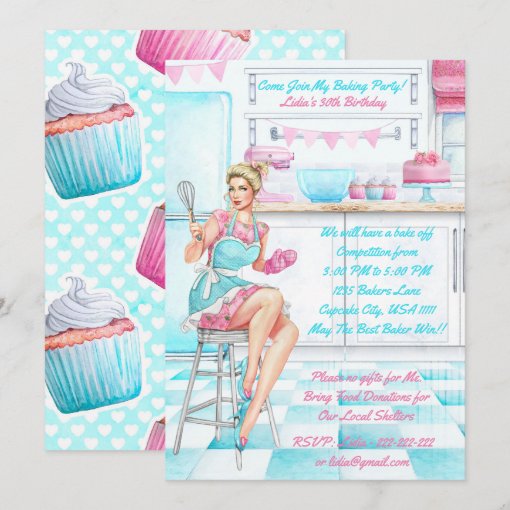 Retro Baking Cook Off Competition Birthday Party Invitation | Zazzle.com