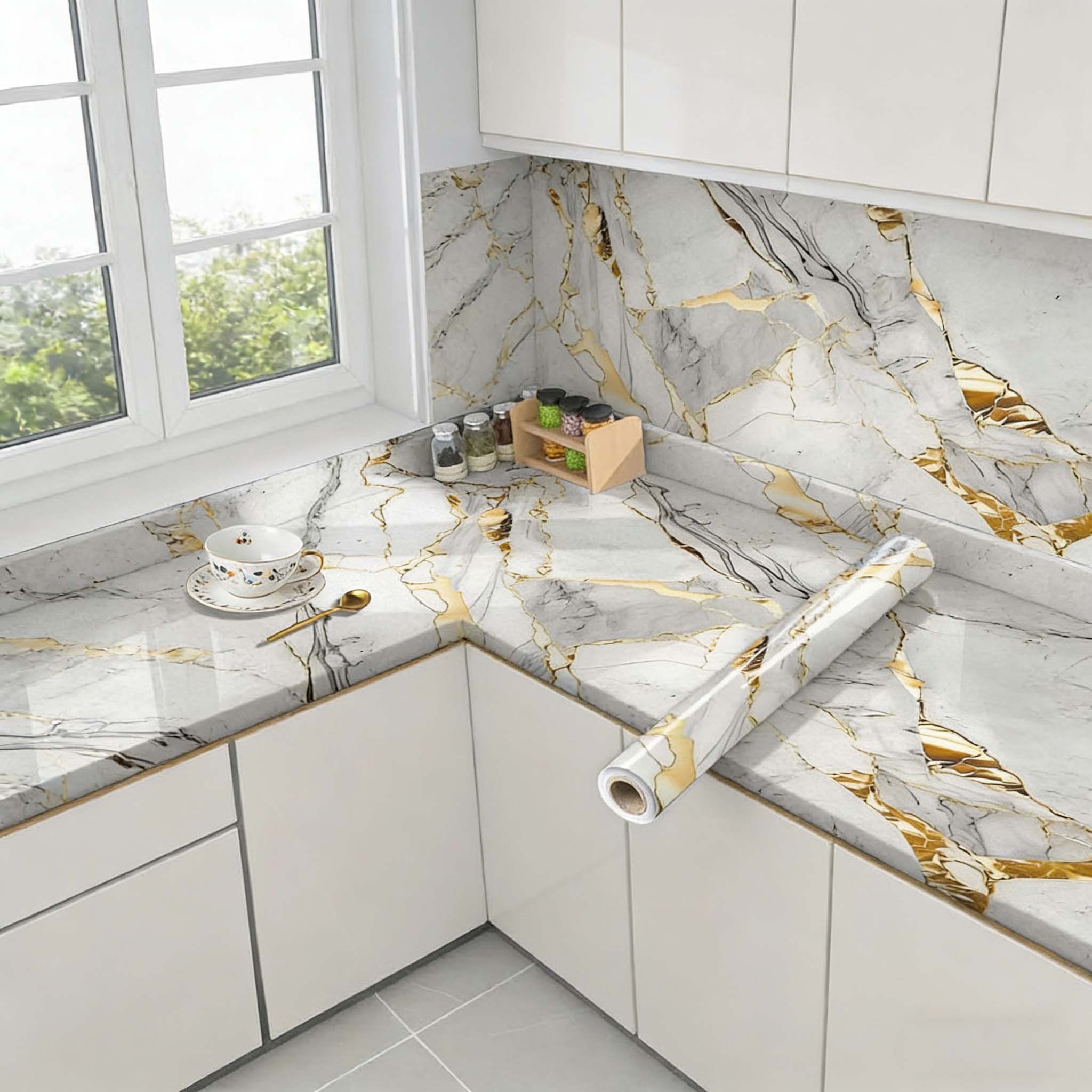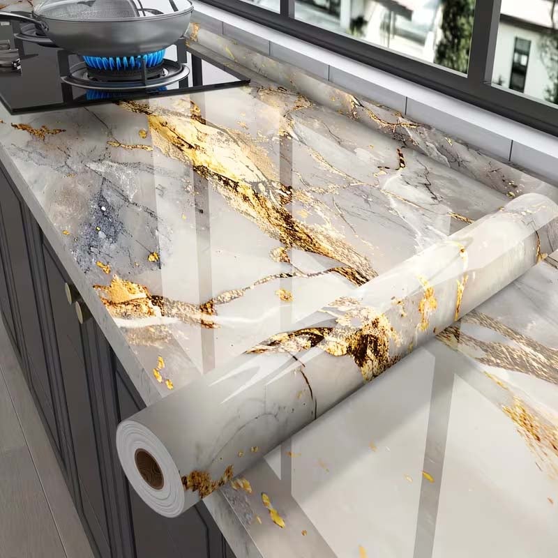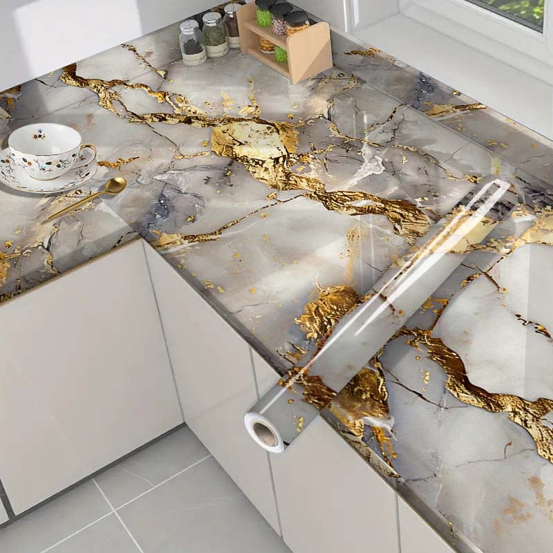 ZAEWRY Papier Adhesif Marbre Gris Or Plan Travail Film Vinyle Auto ...