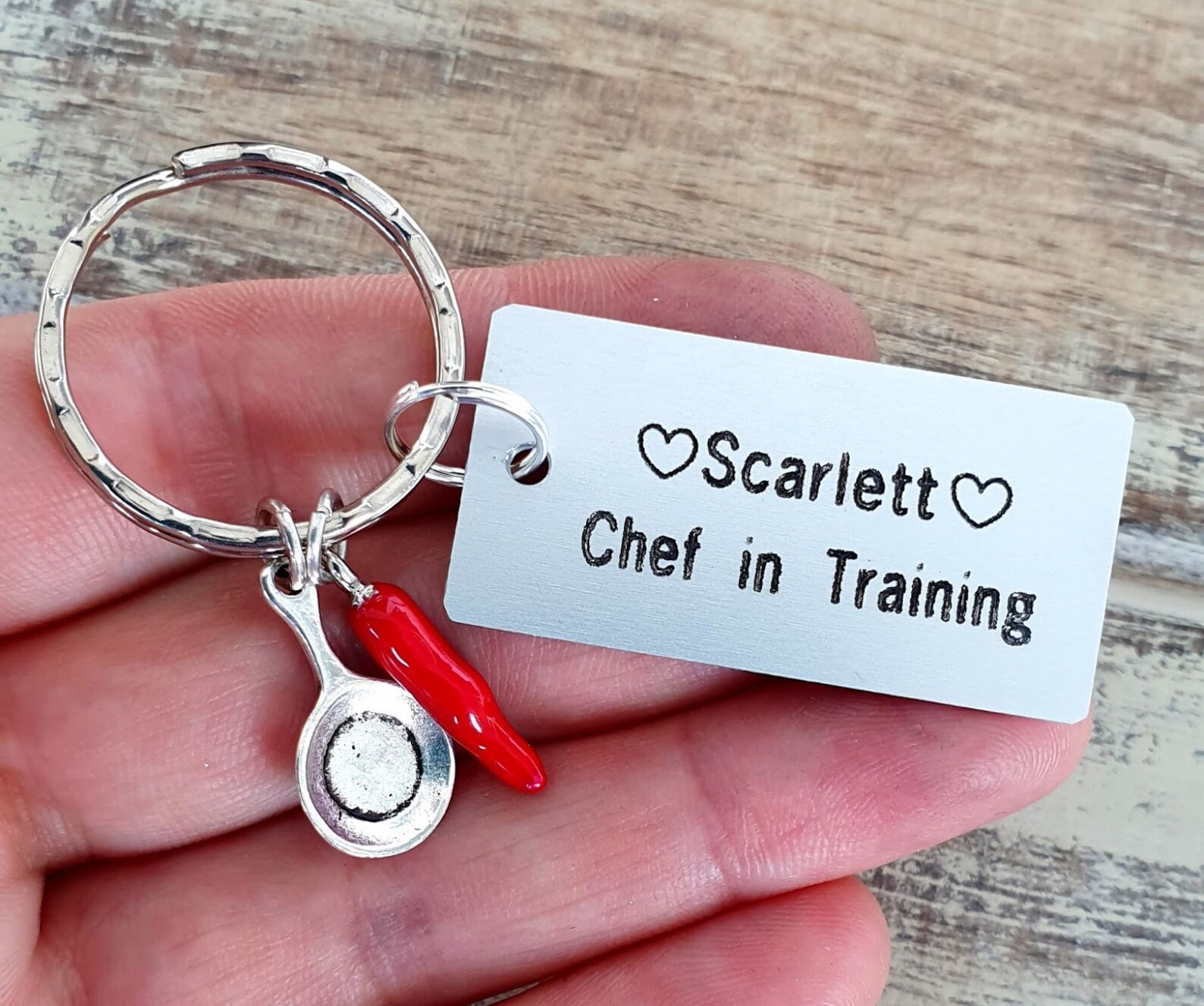 Personalized Chef in Training Keychain, Engraved Key Ring, Custom ...