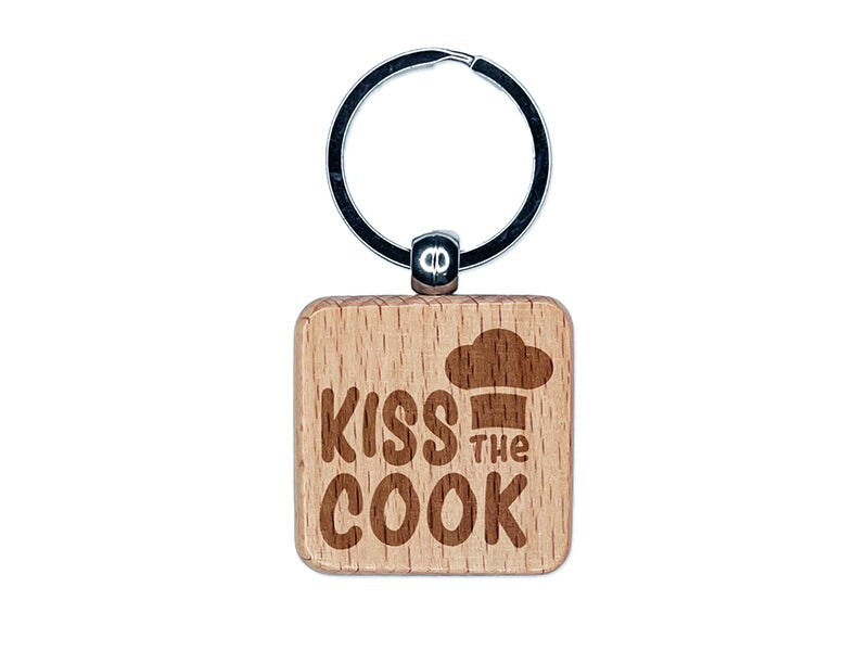 Kiss the Cook Cooking Chef Engraved Wood Square Keychain Tag Charm ...