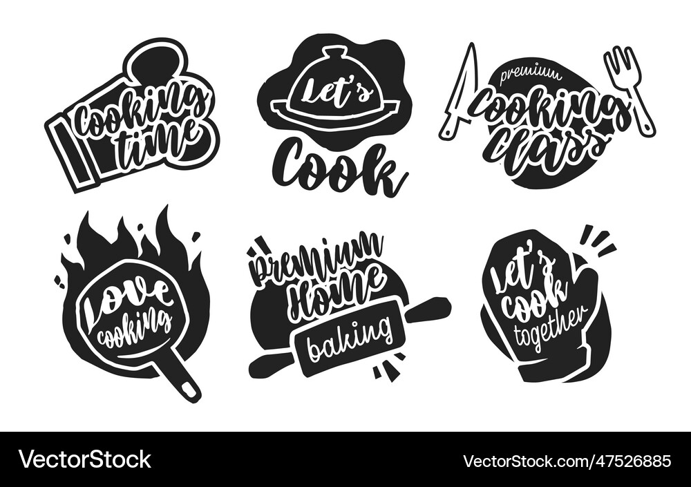 Cooking label set cook food eat home baking Vector Image