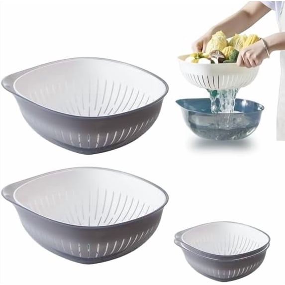 Colander Bowl Set of 2, Nesting Large Capacity Plastic Food Strainer ...