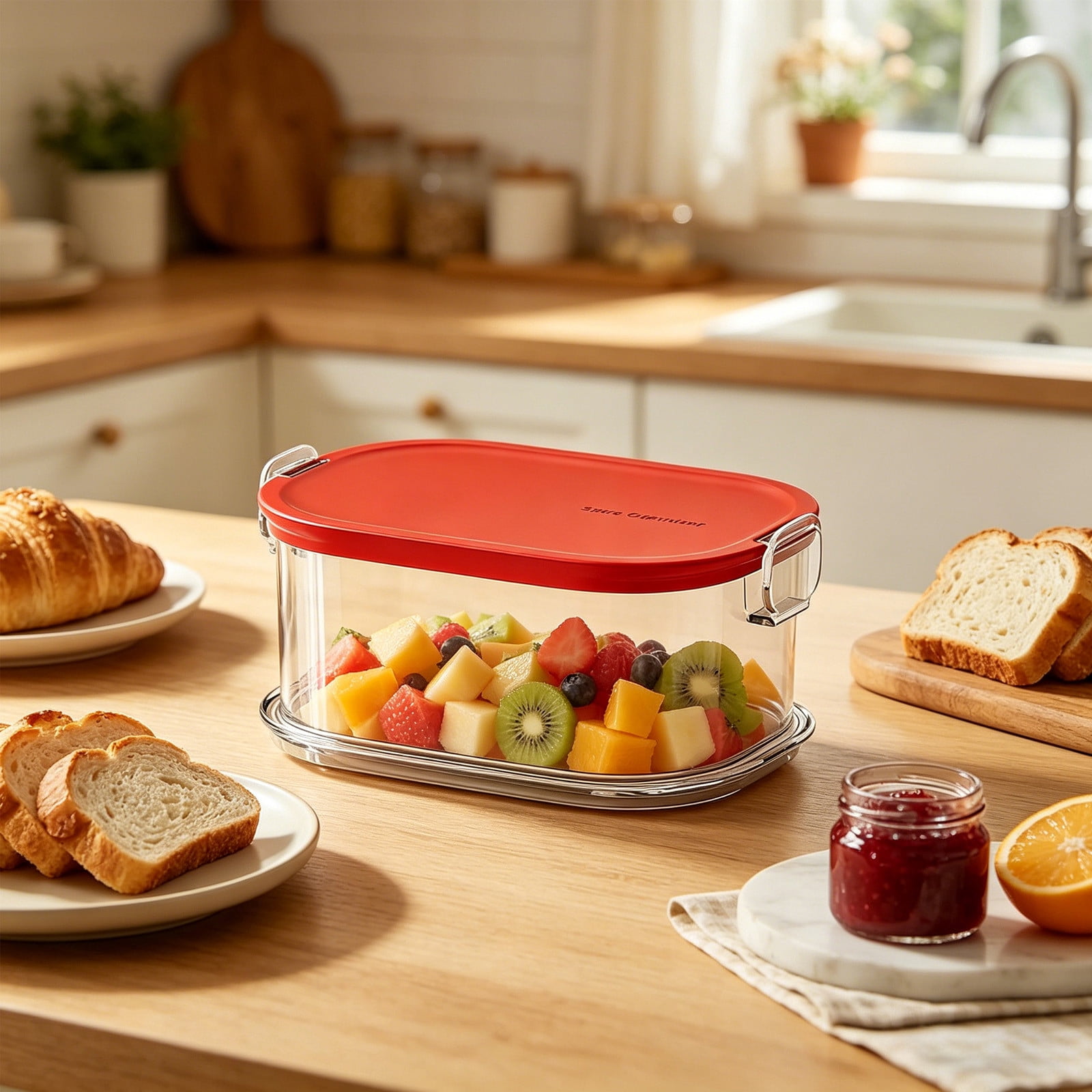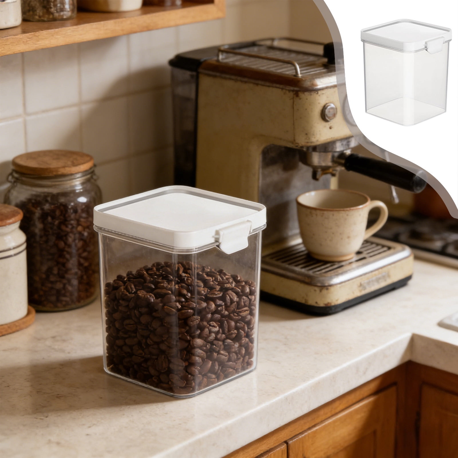 Airtight Transparent Food Storage Jar with Handle Plastic Kitchen ...