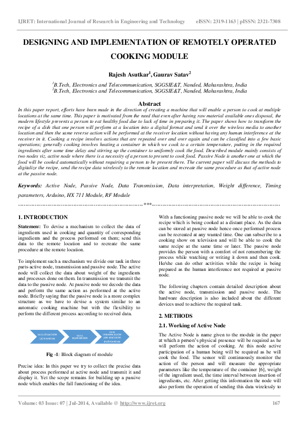(PDF) DESIGNING AND IMPLEMENTATION OF REMOTELY OPERATED COOKING MODULE