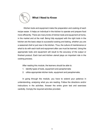 Latest Cookery 7 Module 1 Kitchen Tools Equipment Part 1 STUDENT | PDF ...