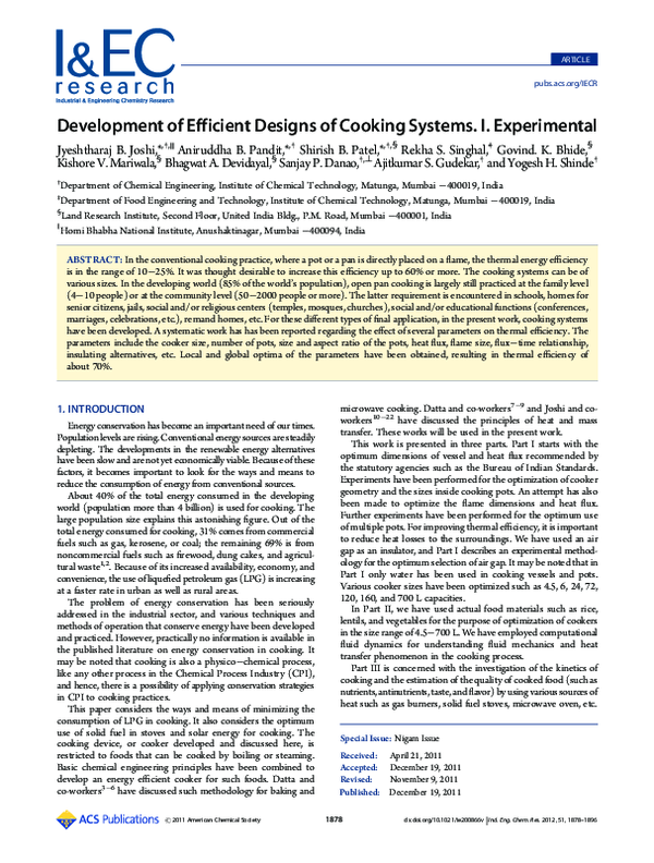 (PDF) Development of Efficient Designs of Cooking Systems. I. Experimental