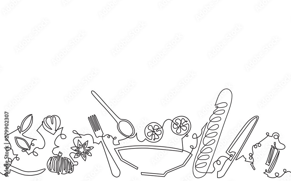 Cooking Seamless Pattern. One line background with Empty Space for Text ...