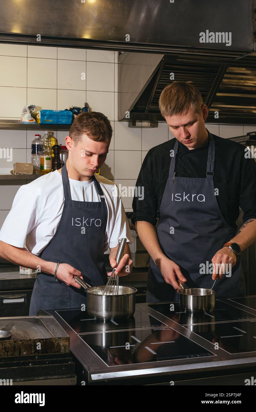 two cooks in the kitchen preparing Stock Photo - Alamy