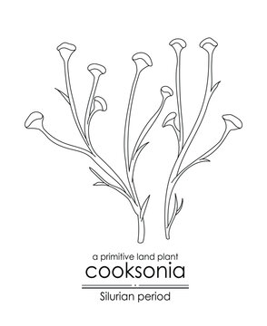 Cooksonia, a Silurian period primitive land plant, black and white line ...