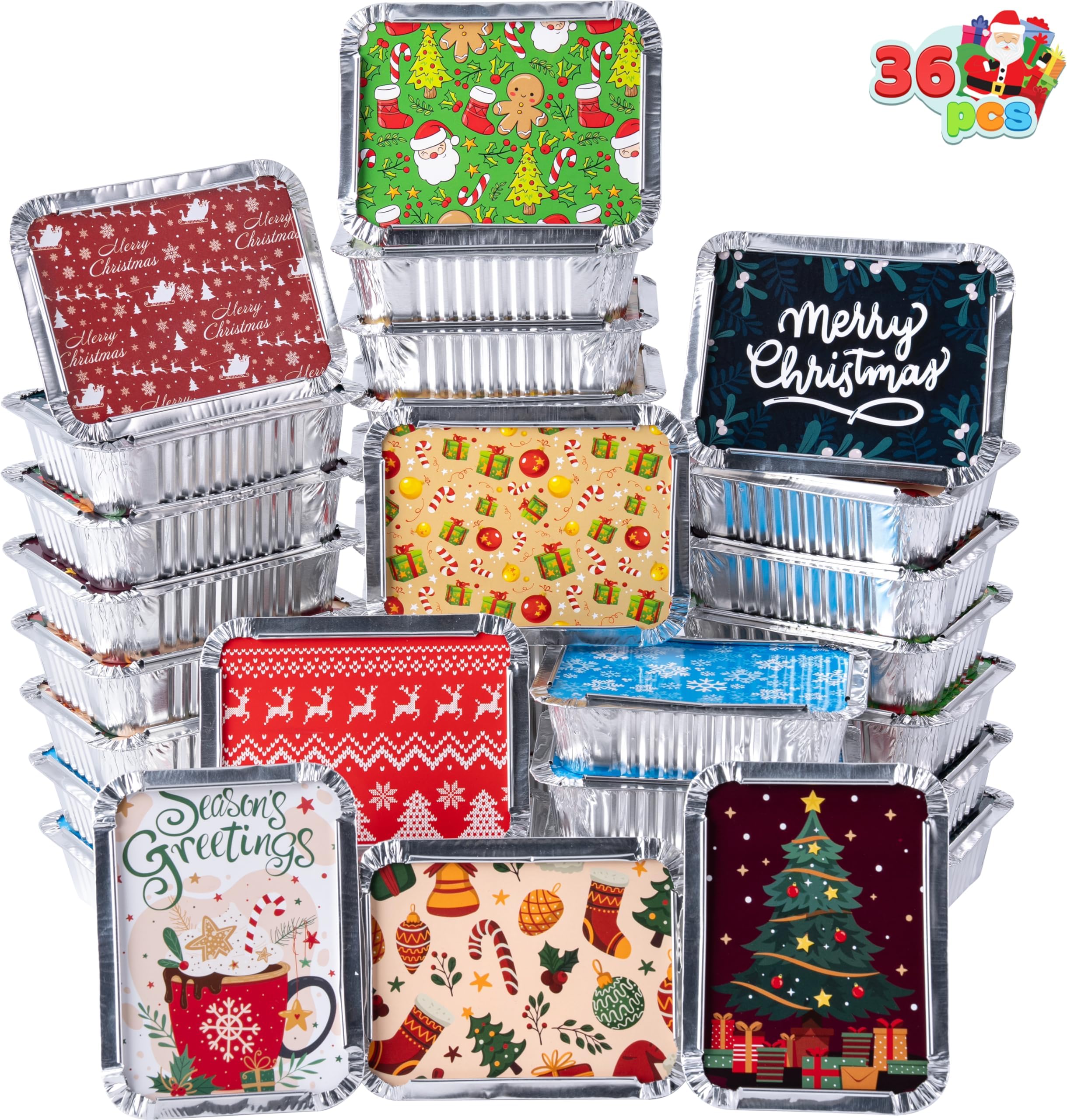 Recipe Tin Box 40-Piece Christmas Foil Container Set With Lids - 7x5x2 ...