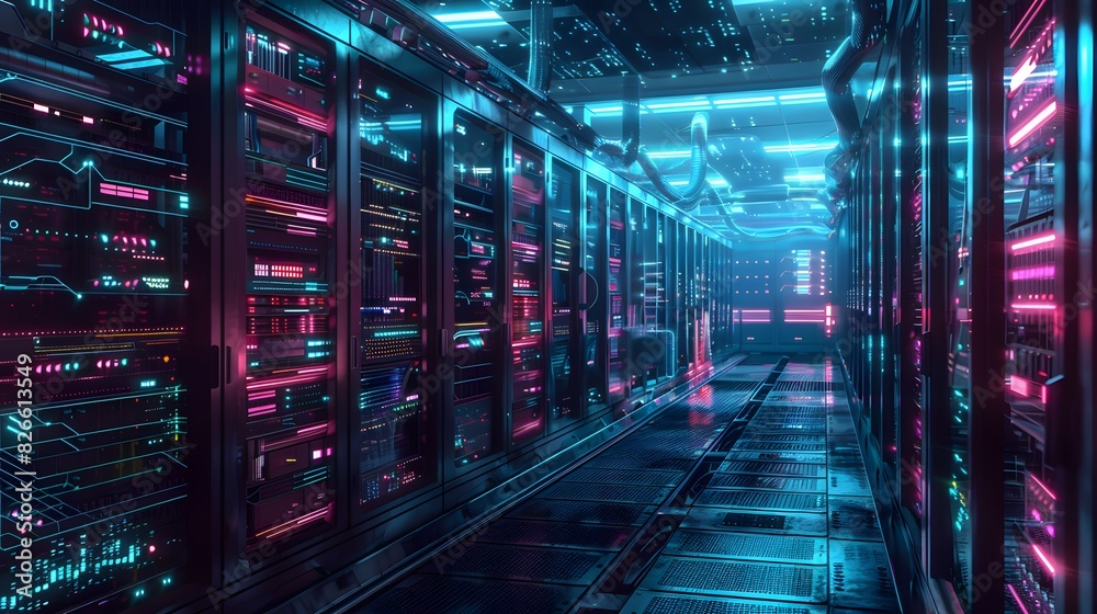 Modern Server Room Technology. A futuristic server setup for tech ...