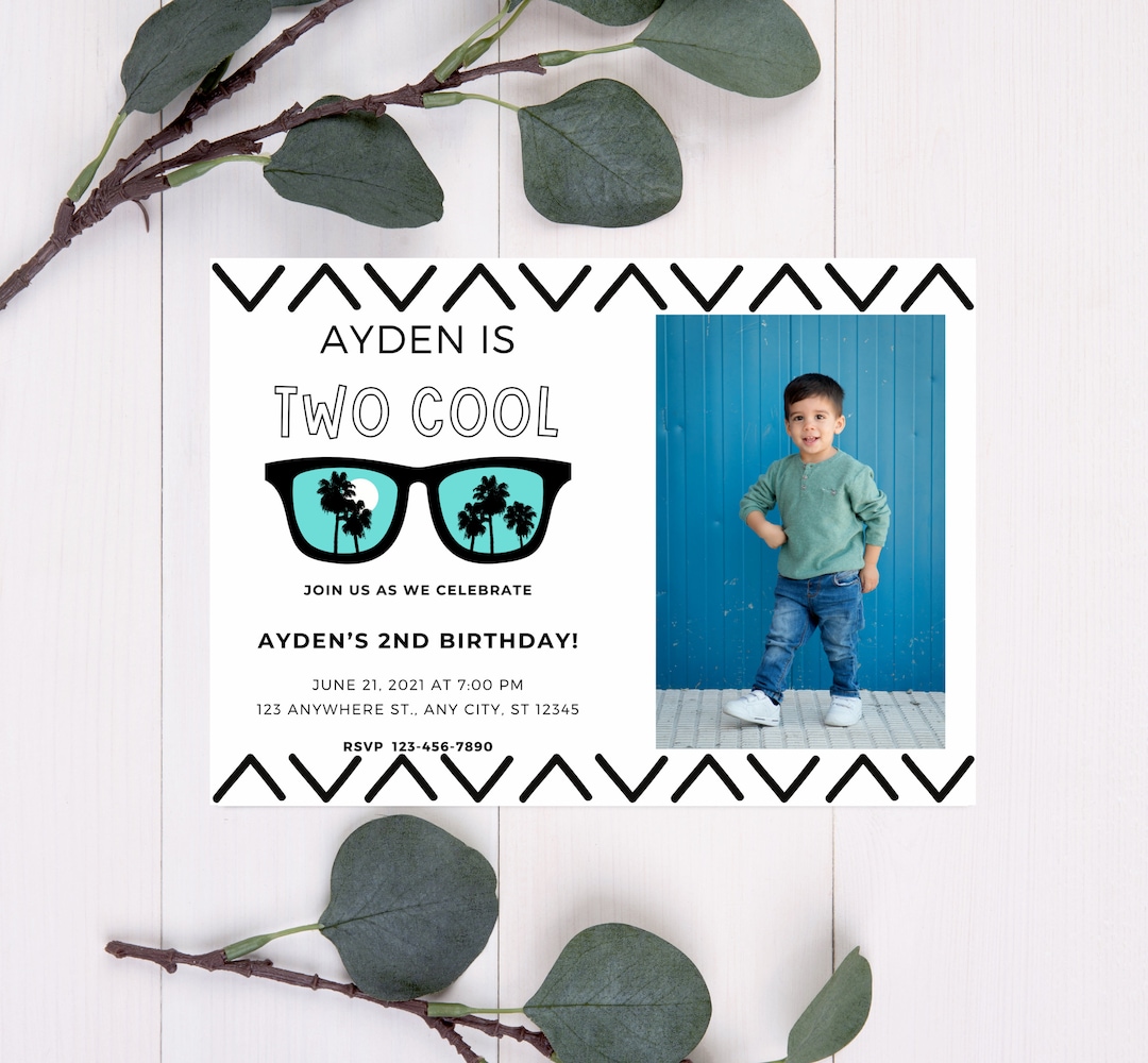 Editable TWO Cool Birthday Invitation, Kids Birthday Party, Photo ...