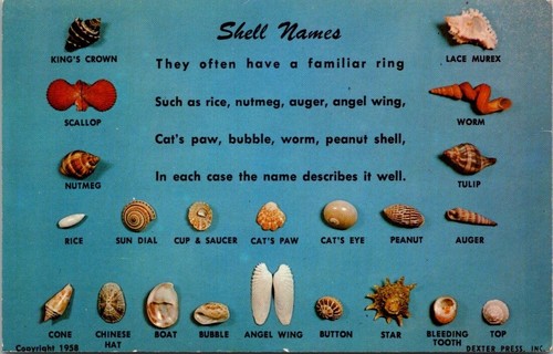 Vintage Postcard Sea Shells Names Angel Wing Cat's Paw Worm Peanut ...