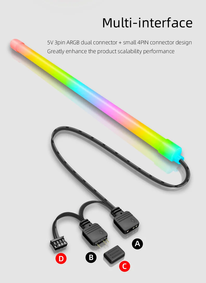 Coolmoon Cm-Ls40 5v Argb Pc Case Led Bar Sata 3pin Computer Rgb Lamp ...