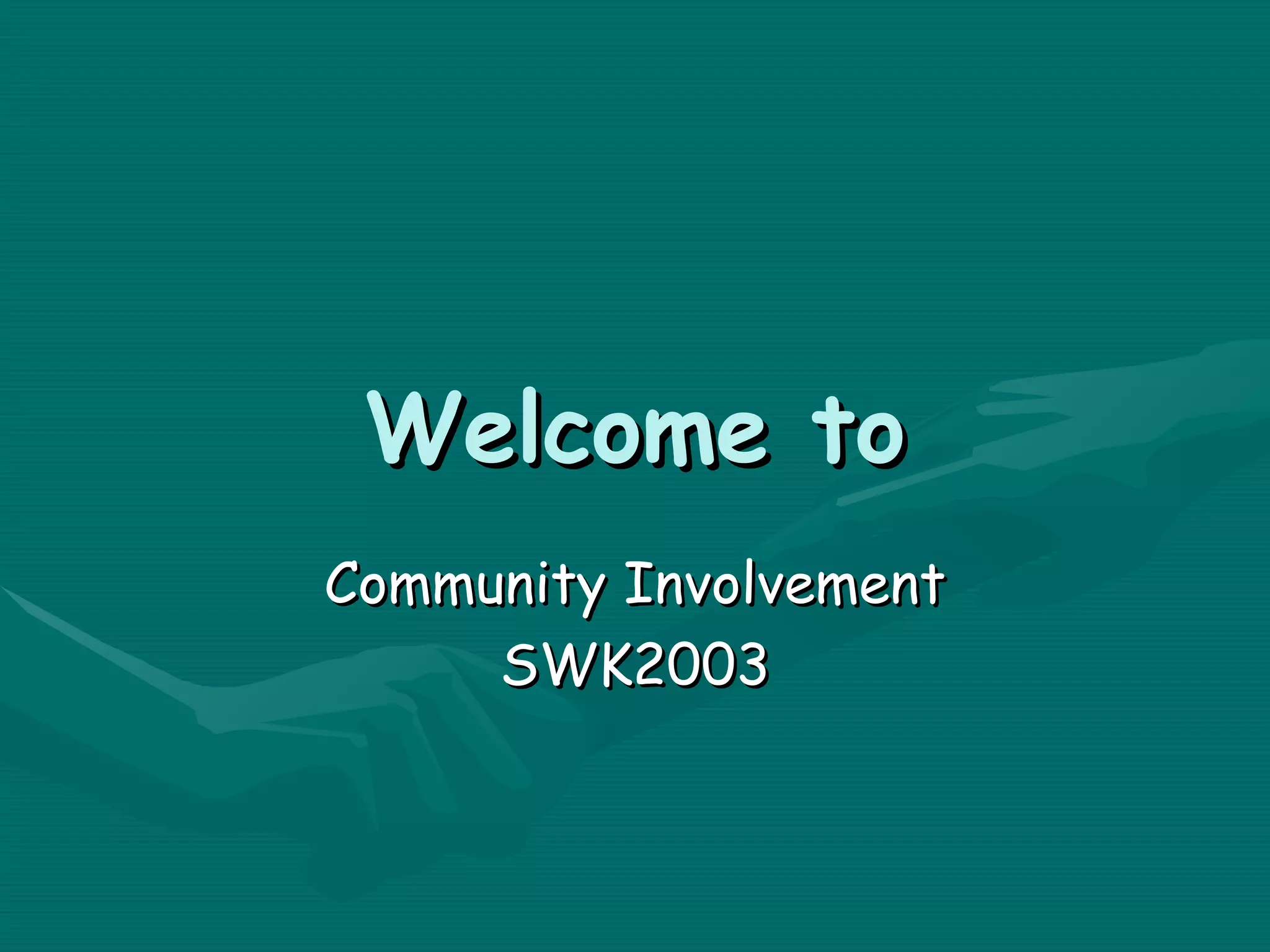 Welcome to Community Involvement SWK2003 | PPT