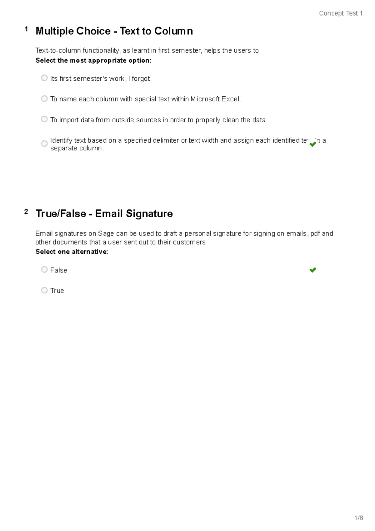 Cocnept Test 1 - uSE IT - 1 Multiple Choice - Text to Column Text-to ...