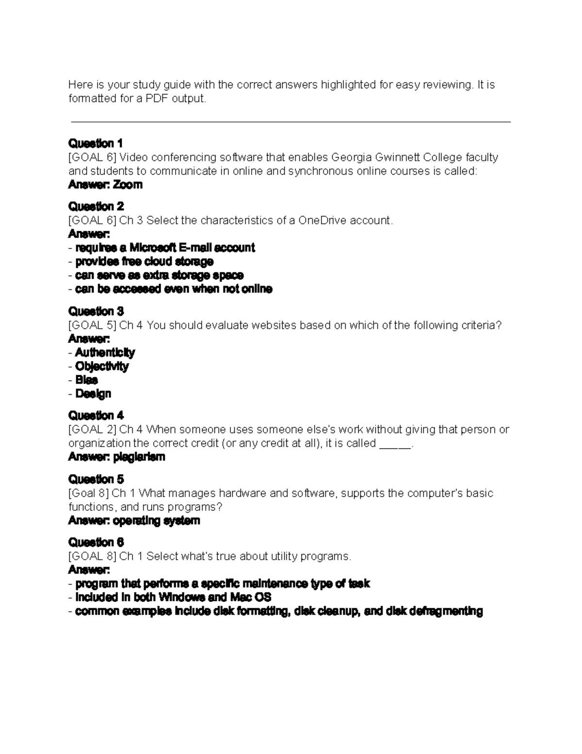 Computer Concepts Connect Exam 1 Study Guide with Answers Highlighted ...