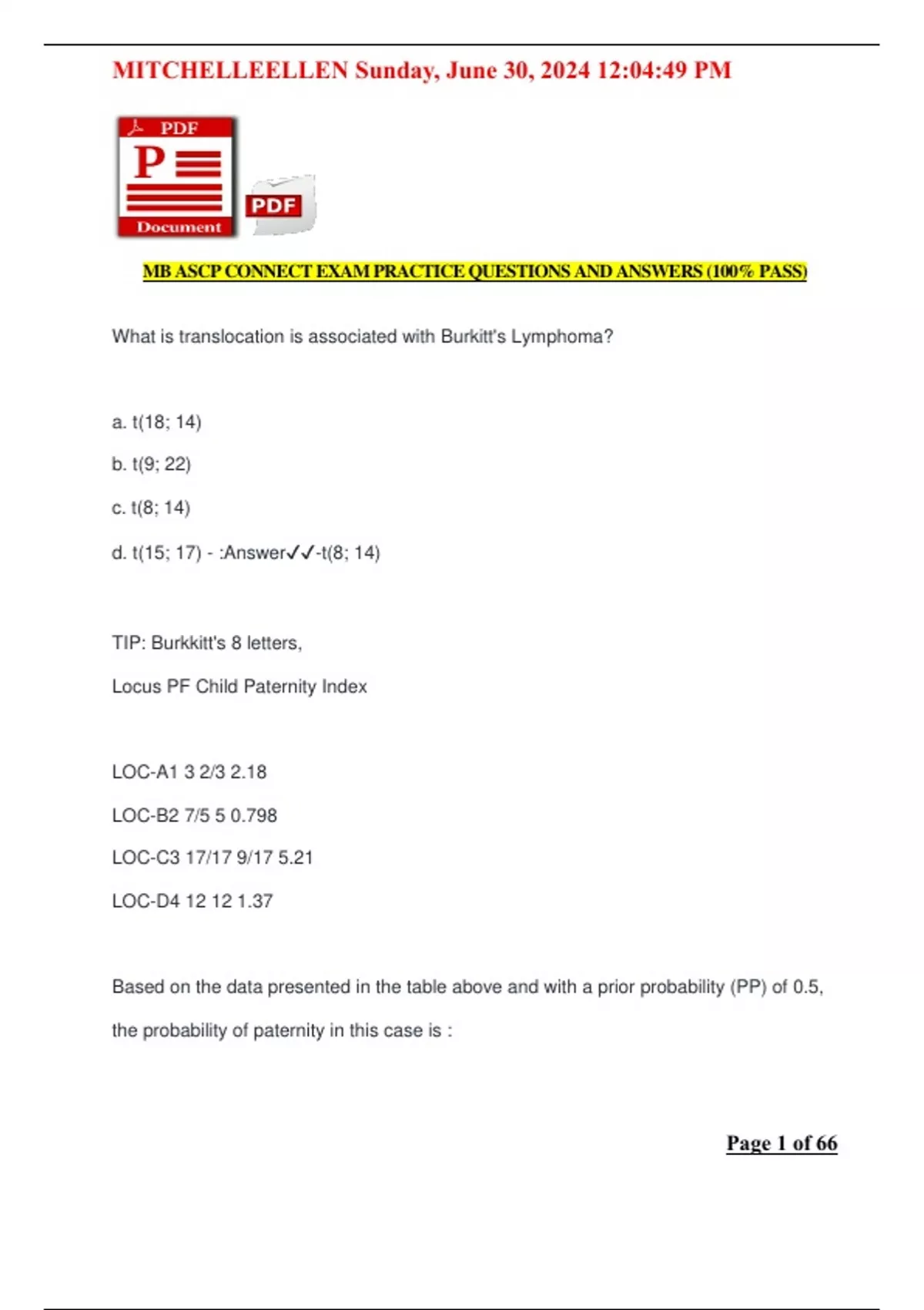 MB ASCP CONNECT EXAM PRACTICE QUESTIONS AND ANSWERS (100% PASS) - Mb ...