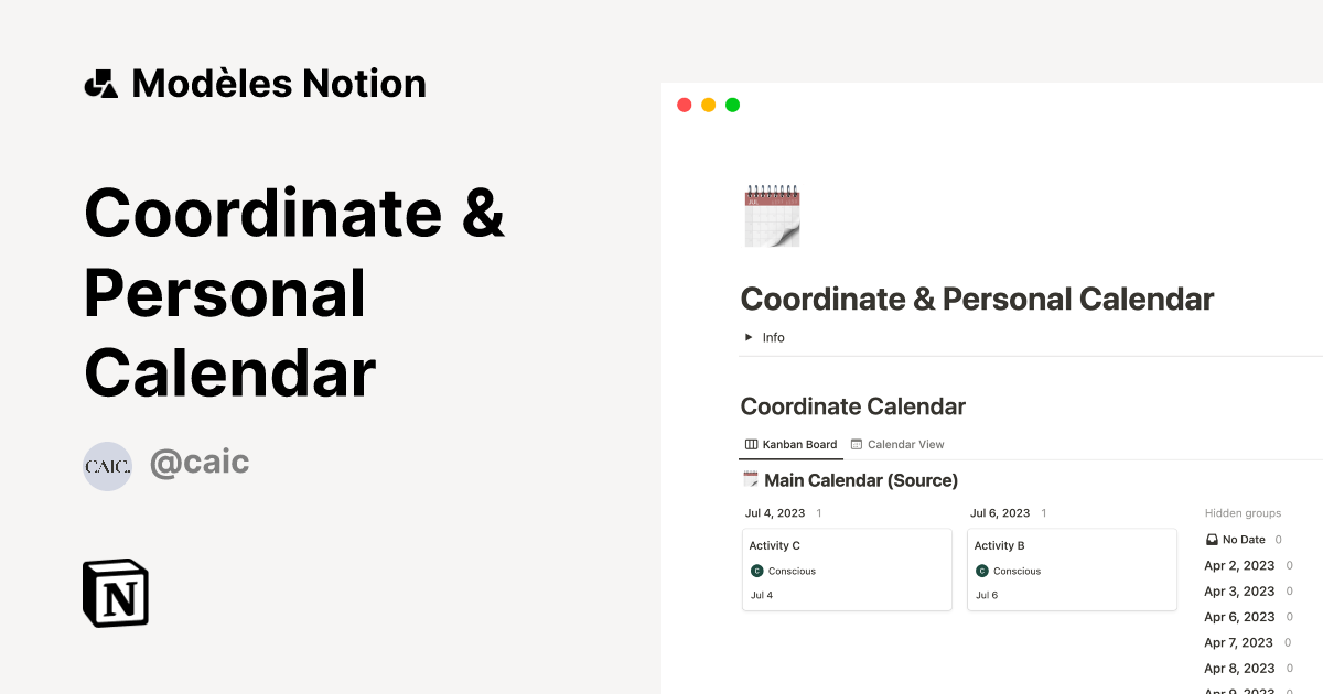 Coordinate & Personal Calendar | Modèle créé par CAIC | Marketplace Notion