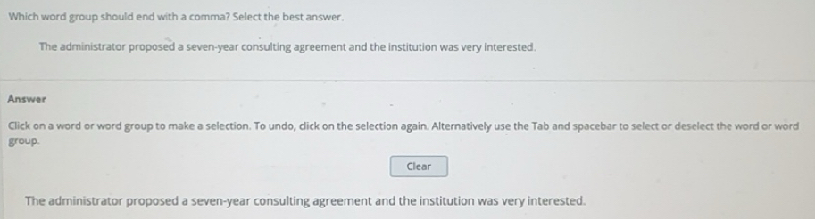 Solved: Which word group should end with a comma? Select the best ...