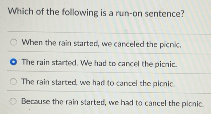 Solved: Which of the following is a run-on sentence? When the rain ...