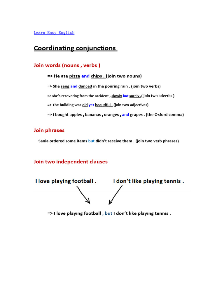 English Grammar/Coordinating Conjunctions/Explanation, Examples and ...