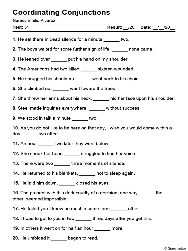 101 Printable Coordinating Conjunctions PDF Worksheets - Grammarism