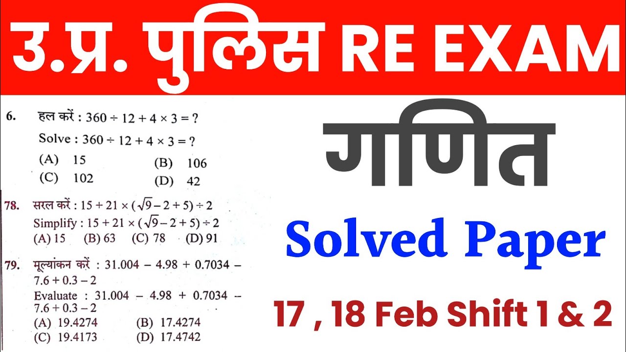 UP Police Re-Exam Maths UP Police Math UP Police Maths Practice Set ...