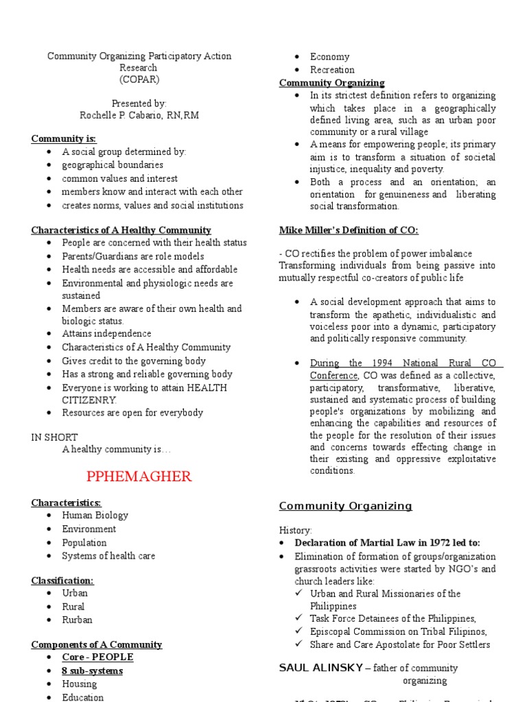COPAR: A Comprehensive Guide to Community Organizing Methods - Studocu