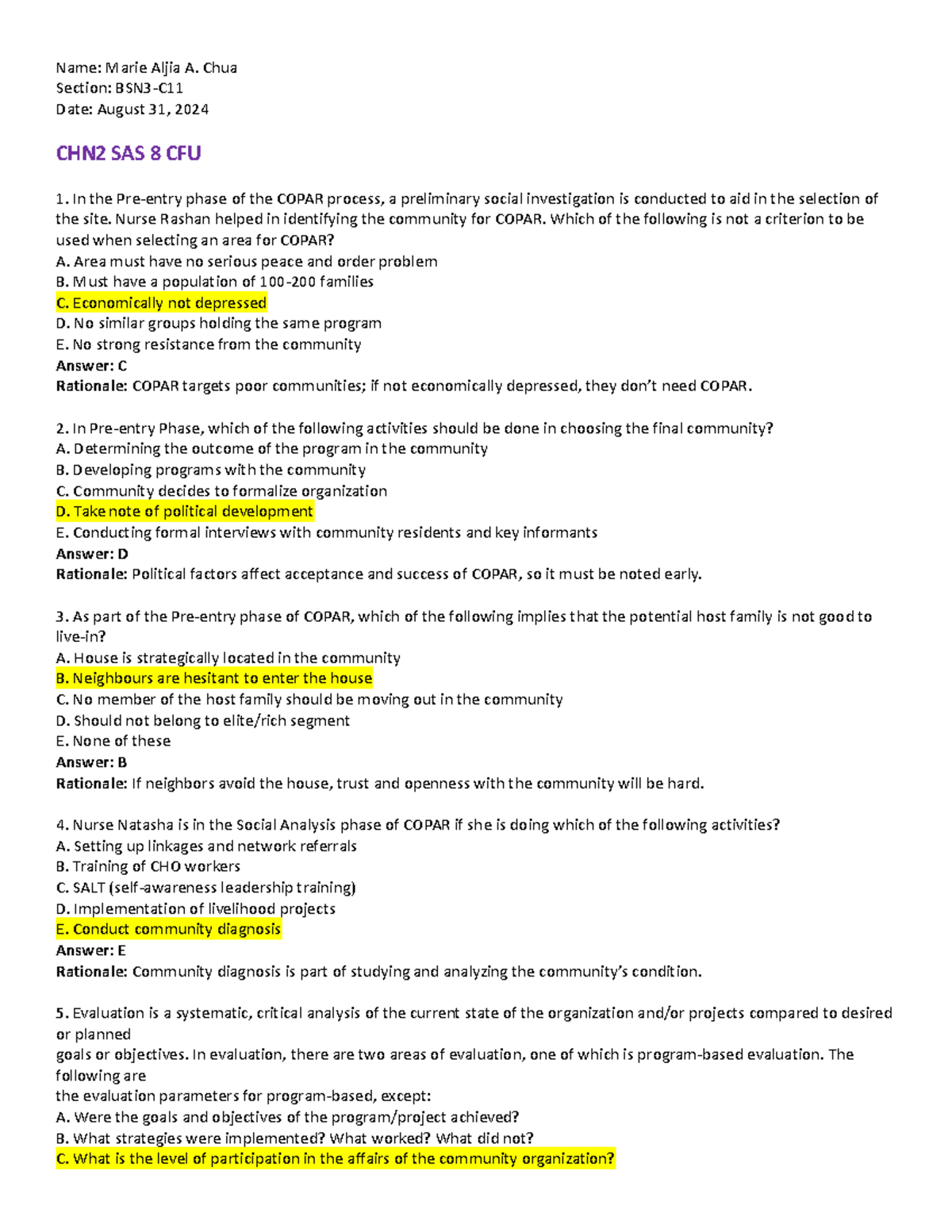 CHN2 SAS 8 - COPAR Process Overview and Evaluation Insights - Studocu