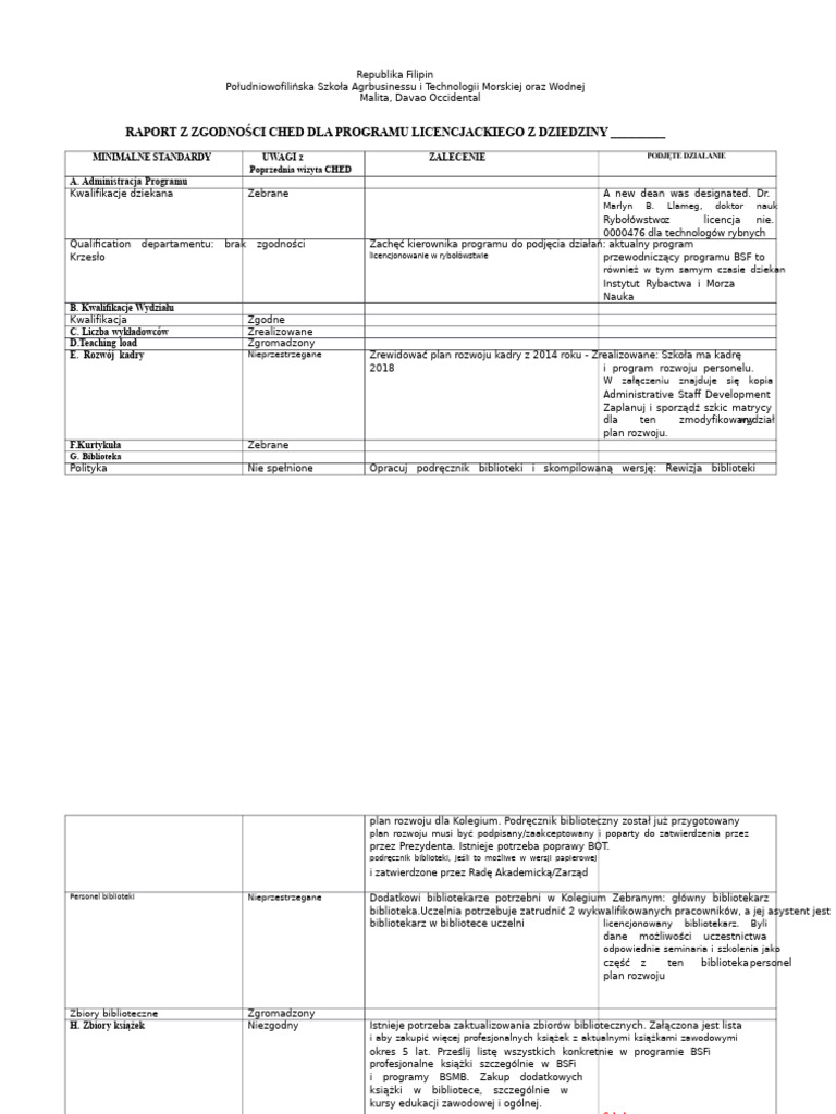 Ched Copc Matrix | Librarian | Dean (Education)
