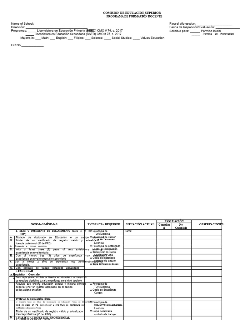 Lista de Verificación de Ched Copc | PDF | Maestros | Diploma