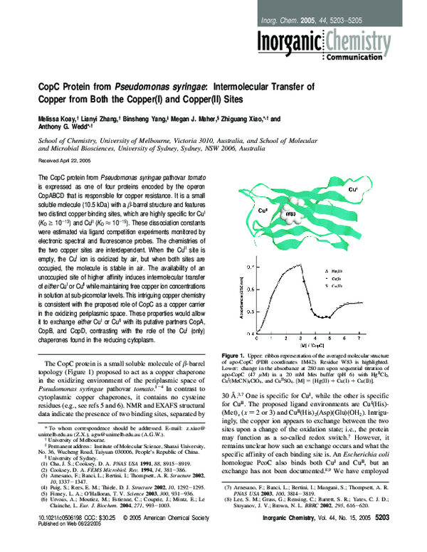 (PDF) CopC Protein from Pseudomonas s yringae : Intermolecular Transfer ...