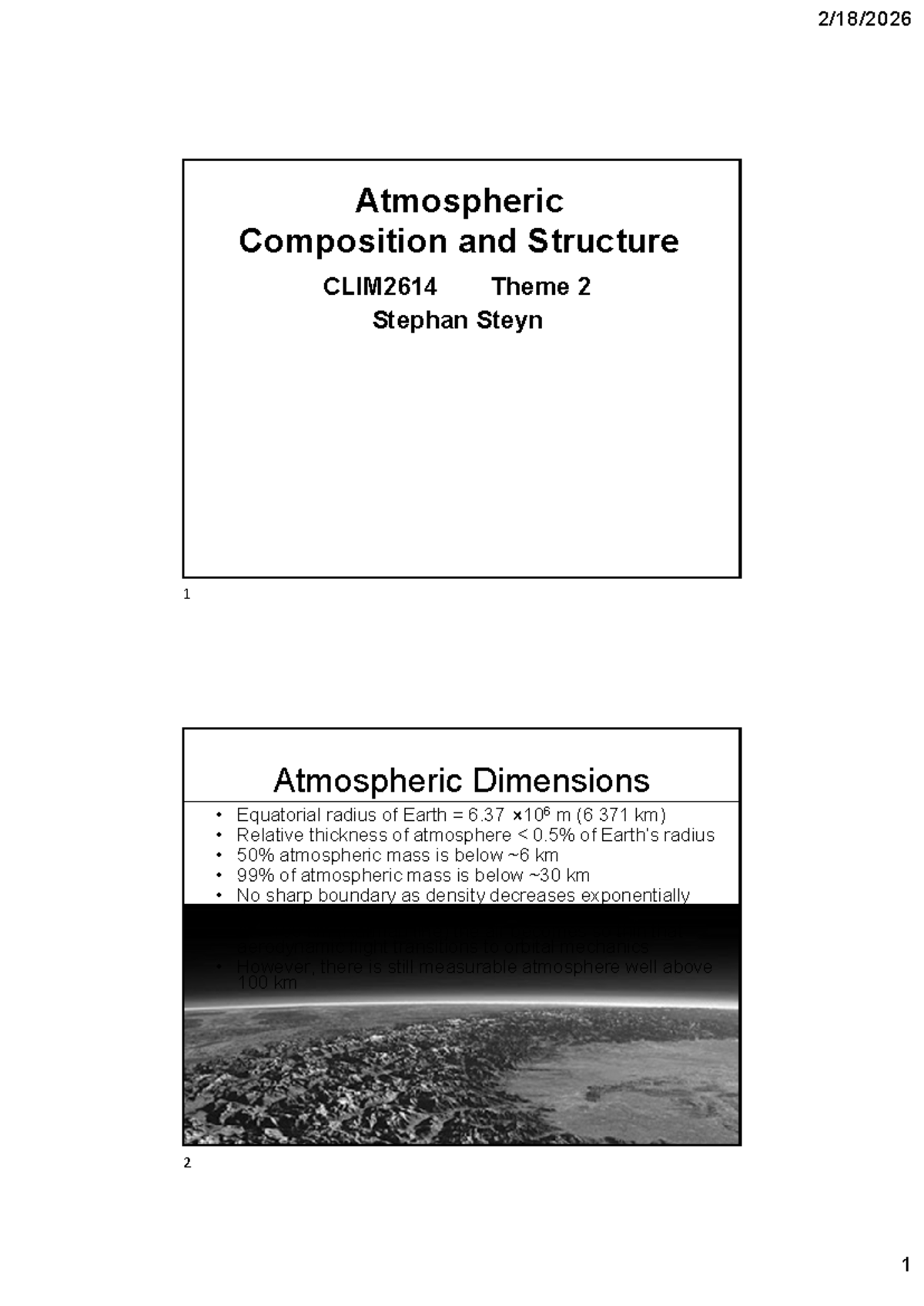 CLIM2614 Lecture Notes: Atmospheric Composition & Structure - Studocu