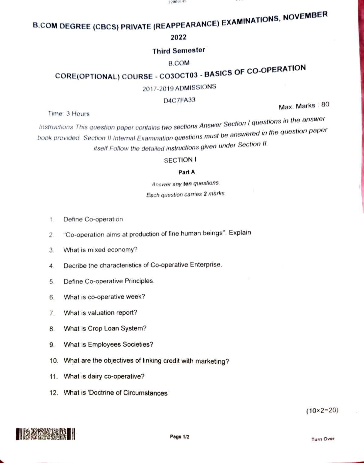 Coperation Questions - 22009145 ####### B O DEGREE (CBcs) PRIVATE ...