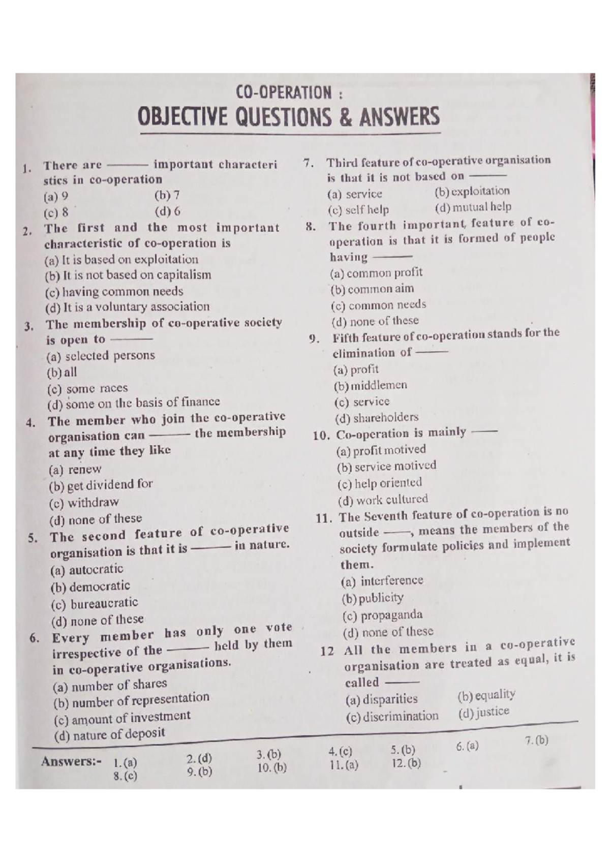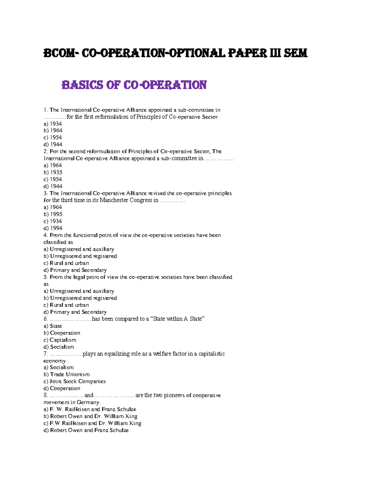 Mcq-Bcom co operation-Basics of co operation - Bcom- Co-operation ...